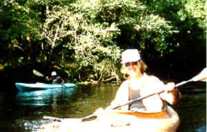 Three GCC members and a guest traded two wheels for a two-headed paddle for a serene trip down the Santa Fe River on August 23rd. Carolyn Hufty, Kevin Jones and his brother, and Roger Pierce enjoyed the great weather, calm waters, exquisite scenery, and gourmet lunch provided by Brasington's Silent Waters.