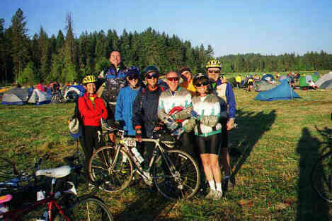 All the mechanics knew Janet on a first name basis. The mechanics were awesome - they never rushed and meticulous. Thanks to Jerry at Primo for talking me into that new 105 triple - I needed it to get up the hills (mountains to us). Although, by the end of the ride I was getting mad if anyone made me use my breaks on a downhill - one rider called me "Peek-a-Boo" in reference to the downhill skier. I was hitting 40-45 mph down those switchbacks - Yeehaw! On the ride back to Diamond Lake from Crater Lake (a long downhill run) an ambulance saw Burt and I wizzing by with our GCC jerseys and decided to follow us flatlanders down the mountain. I guess he was sure we'd hit a cross wind and be road kill; we fortunately disappointed them. On the bus ride back to Portland one tandem team said they hit 51 mph! That is faith.